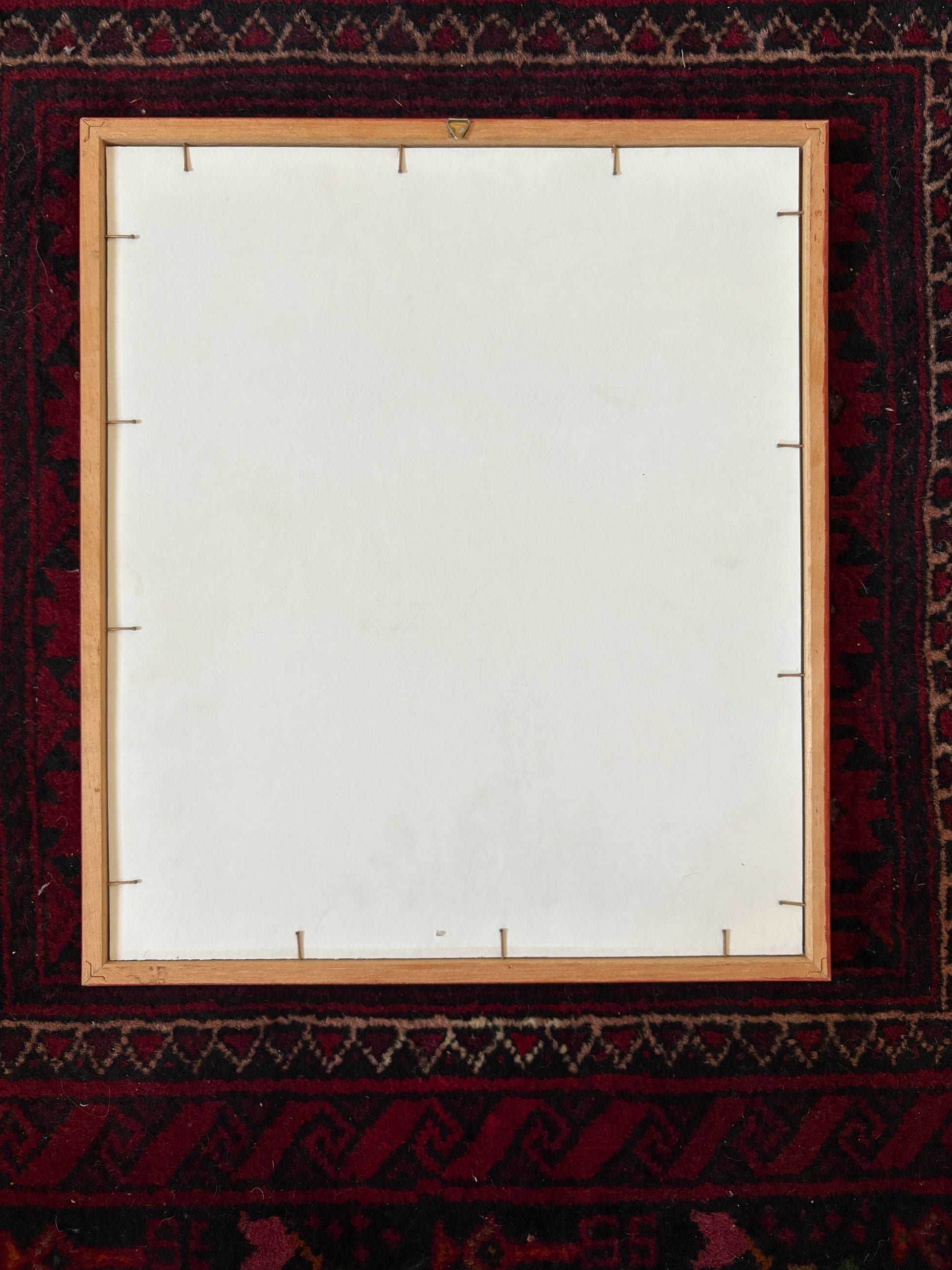 A 1938 Esso petroleum poster entitled “Gite di primavera” (“Spring Trips”). Set behind acrylic with a white mat in a simple red frame. Hangs by d-ring. Some wear to poster. Sources in Florence, Italy.